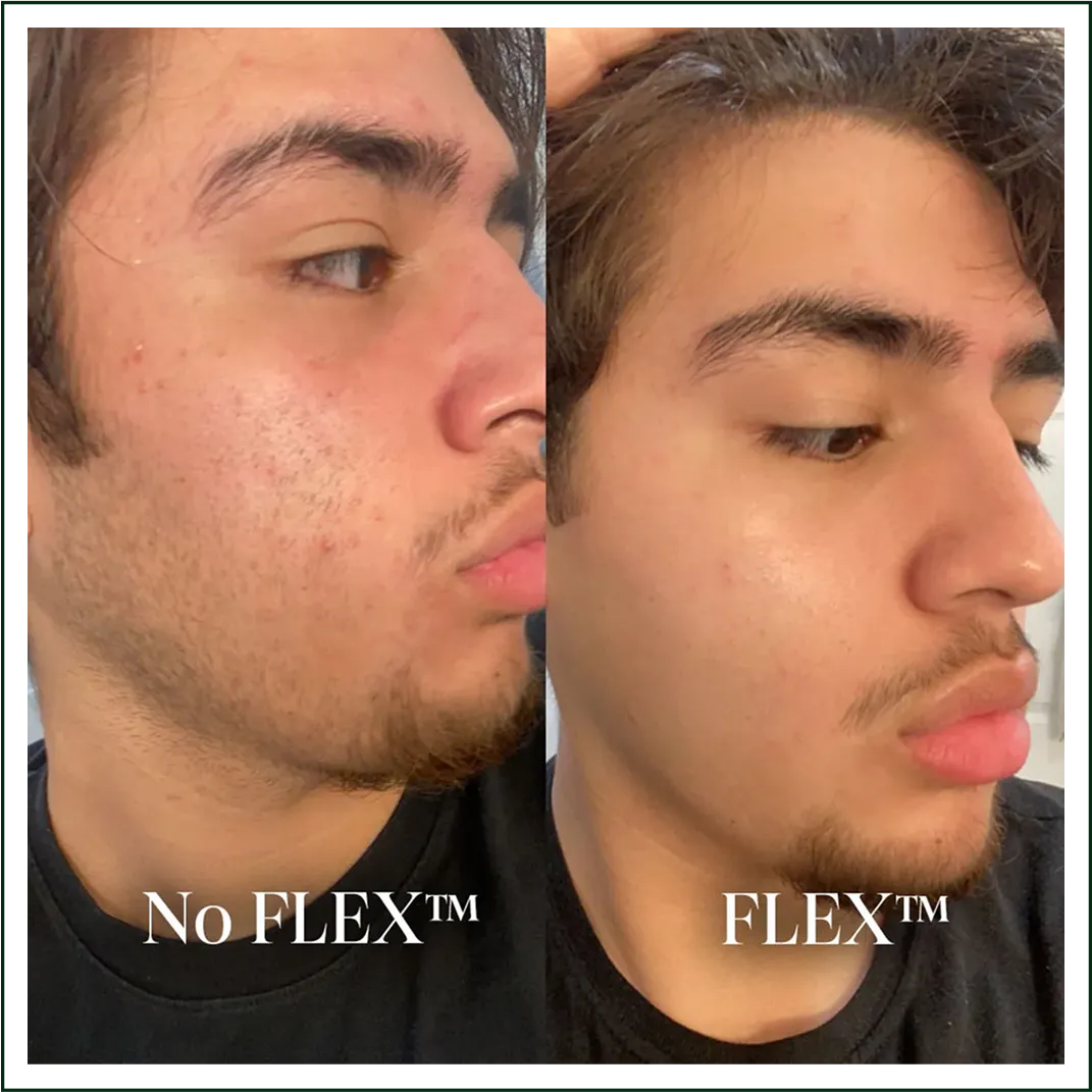 FLEX™ works best with WAR™ Face Wash, PRIME™ Face Quench, and CRUSH™ Bump Serum, but you can use your own face wash if it's gentle and non-irritating.